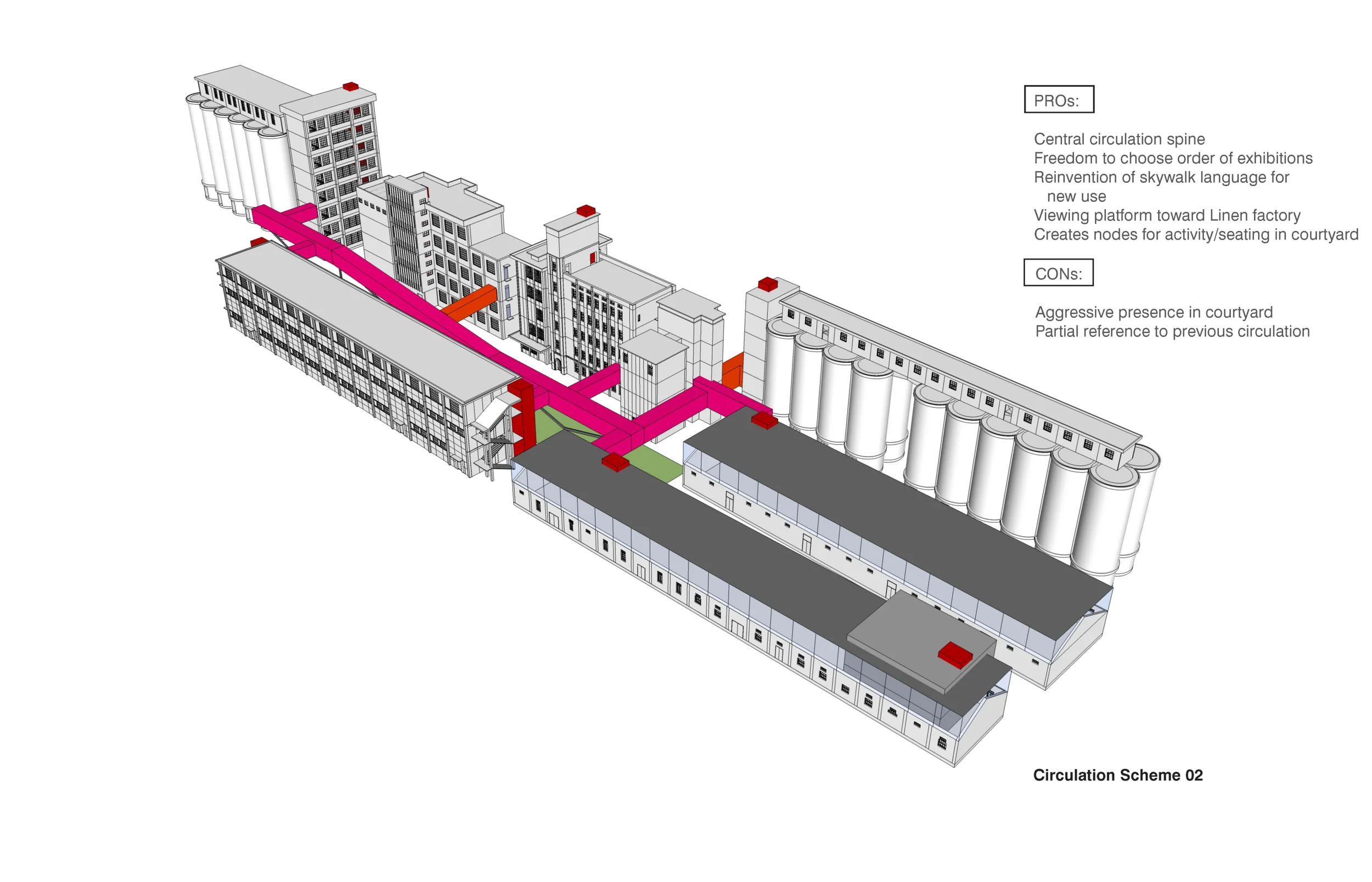 The programming for the museum would focus on temporary exhibitions and commissions for contemporary artists. Exhibitions would have a strong Chinese identity but still feature and engage all contemporary cultures in a vibrant aesthetic discourse. Commissions for contemporary artists would be the most cost-efficient way to constitute the core of the collection. Furthermore, in situ commissioned artworks would take advantage of the architectural specificities of the factory complex and give the museum’s collection its unique identity.