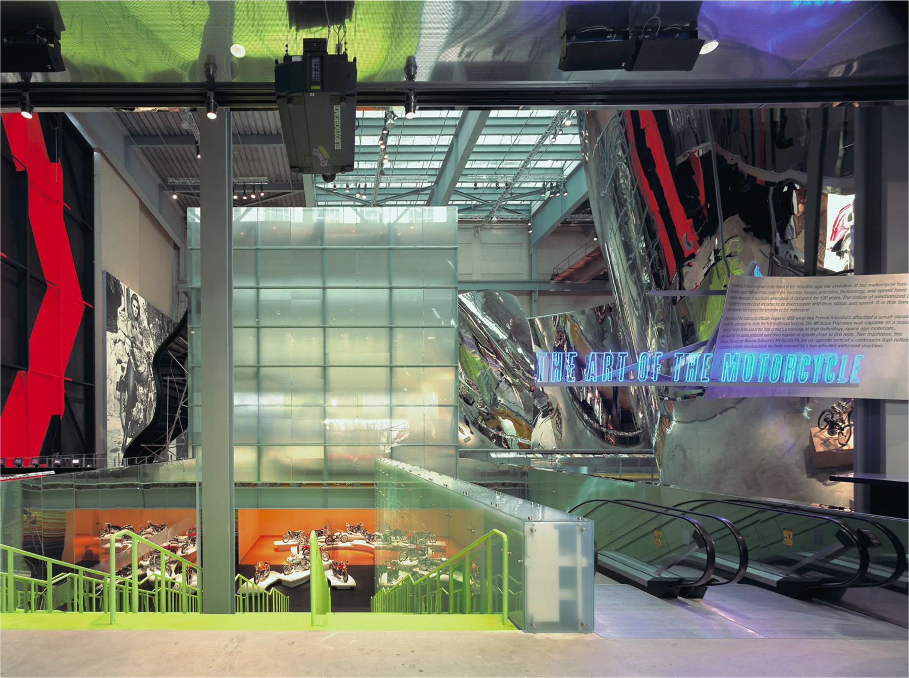 This monumental 5,850 square meter exhibition hall in The Venetian Las Vegas, designed by Rem Koolhaas included unique industrial features and current technology. It was conceived as a venue for the Guggenheim’s widely acclaimed exhibition The Art of the Motorcycle which had a highly successful 15-month run.