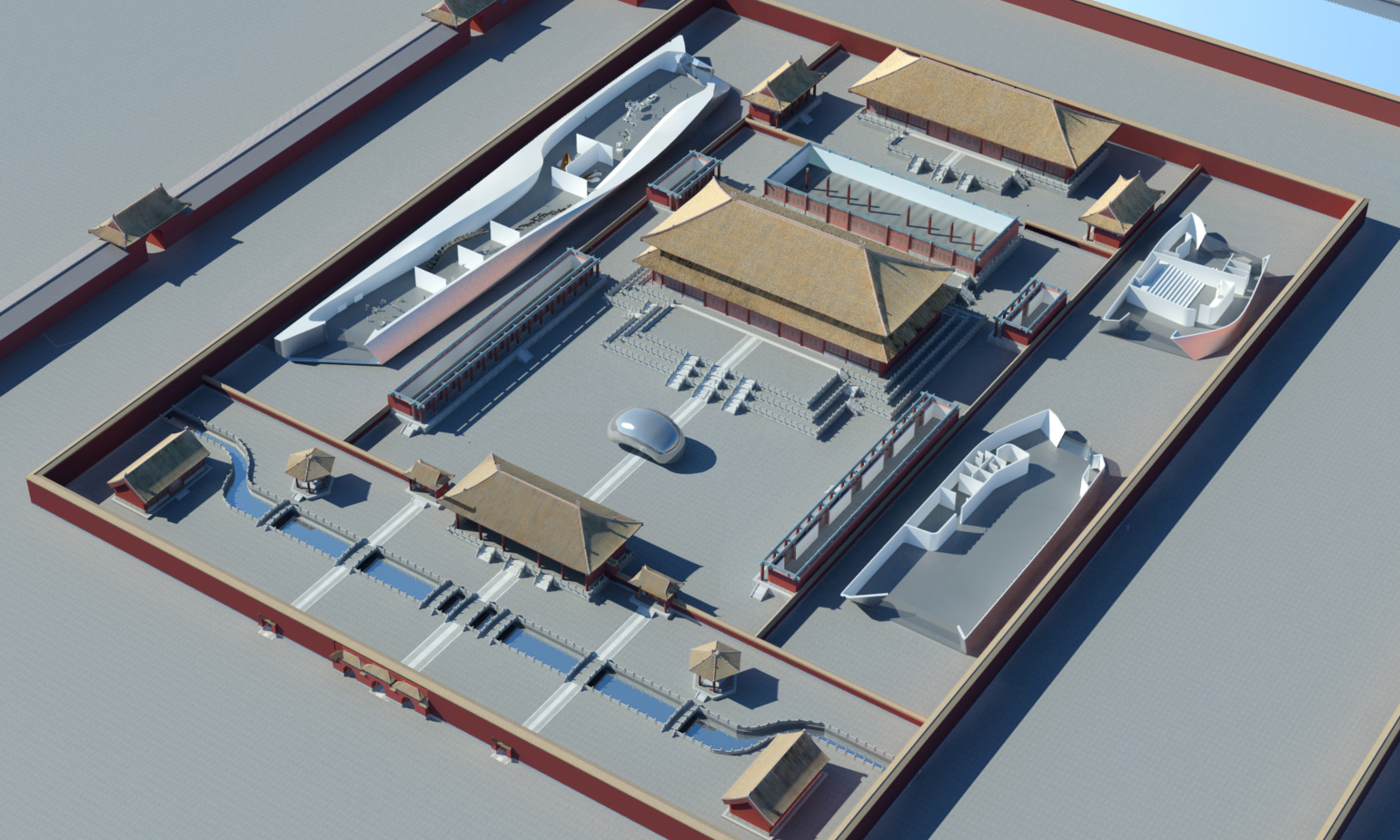 The Master Plan combined world-class architecture together with art, architecture, and educational programs, and revenue-generating activities such as restaurants, art galleries, retail, and high-end offices. The extraordinary existing historical buildings of Taimiao were to be renovated and used for art exhibition purposes – minimal modifications were to be made, respecting their historic value, to address improved lighting systems and to accommodate the installation of art work. Three new buildings were to be constructed with a design that was inspired by Chinese traditional culture and virtually invisible from outside the complex.